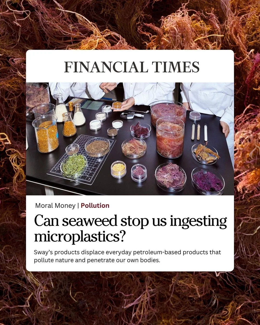 Made from seaweed and designed to run on existing plastic machinery, TPSea Flex™ is a scalable, home-compostable alternative for brands seeking climate-aligned packaging. Sway is the winner of the TOM FORD Plastic Innovation Prize, and TPSea Flex™ caught the attention of partners like Florence Marine X (from pro surfer John John Florence), Burton, Alex Crane, and Ales Grey to be used in commercial packaging.